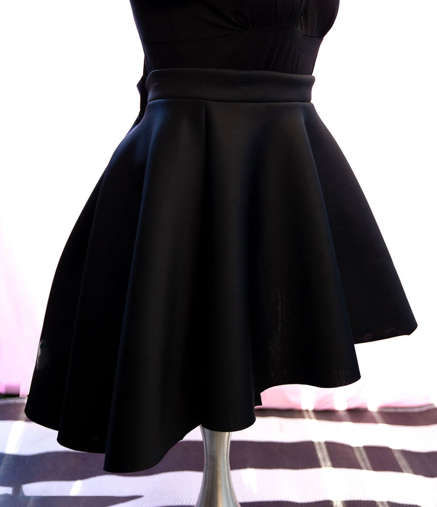 Are you haunting the after-party, going to the car wash, or attending a midnight séance? Either way, you'll need this skirt. Cut from a fabric so rich it absorbs moonlight, this high-waist high low skirt boasts enough dramatic flare to make every twirl worthy of a grand exit—or a proper ghosting.